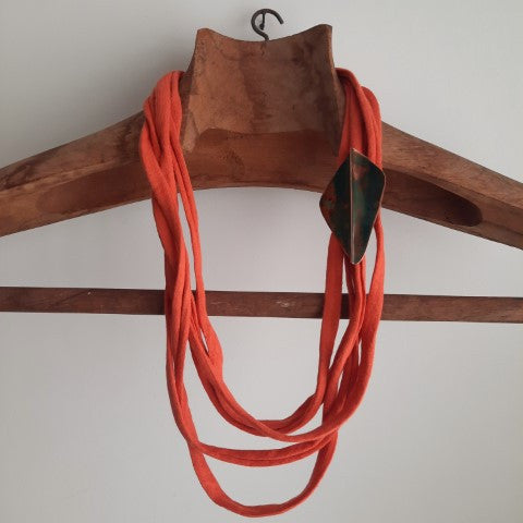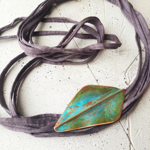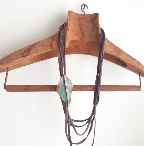 Colar Fold Flecha com fios de desperdício da indústria têxtil irregular e metal oxidado