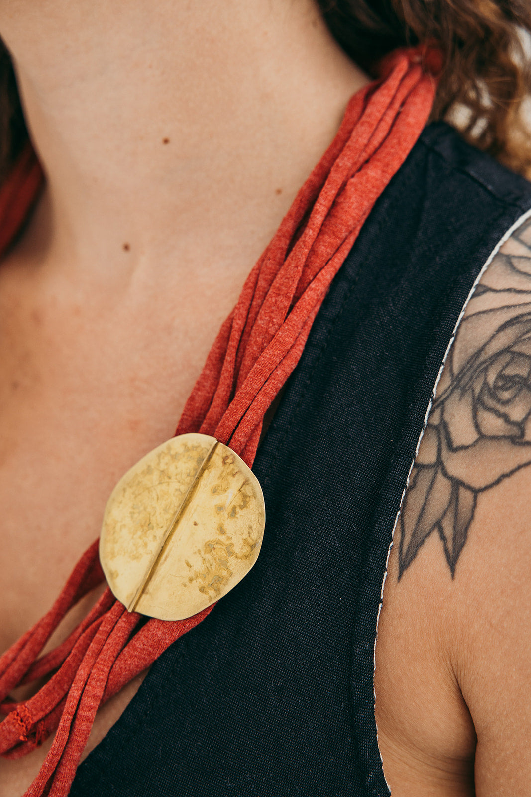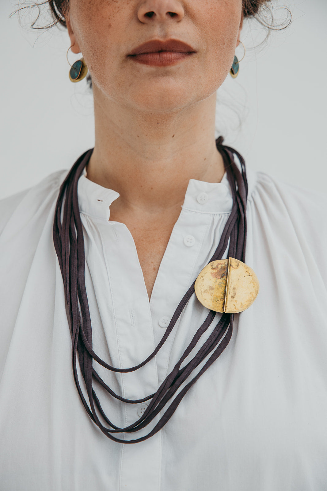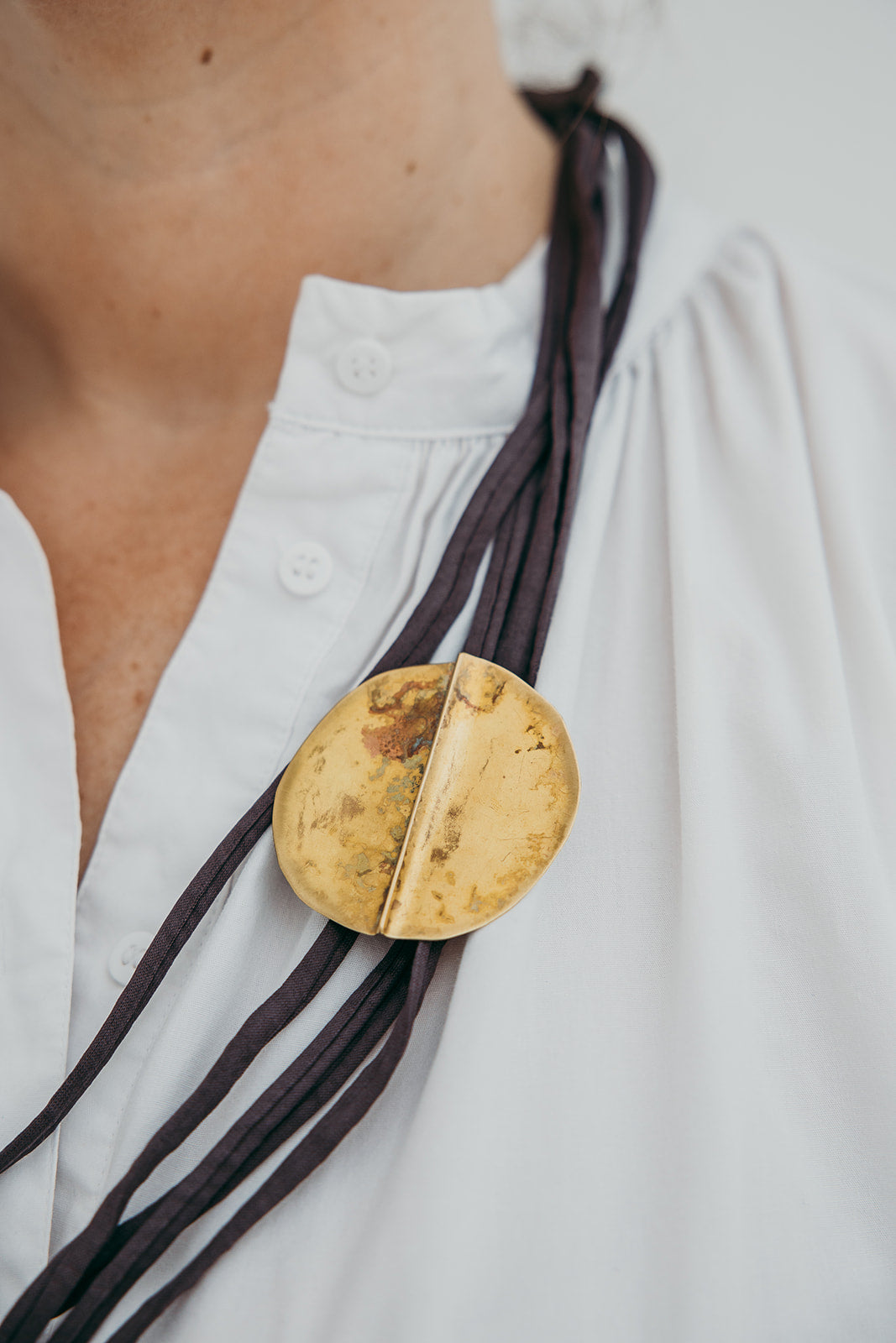 A imagem principal do produto mostra a peça disponível para compra, mas procuramos sempre incluir uma fotografia de contexto, com a peça usada por uma modelo ou em cenário. Essa foto pode não corresponder exatamente à peça que que receberá, podendo ser de outro metal ou de uma tonalidade diferente de oxidação; serve apenas como exemplo de como a peça fica no uso.