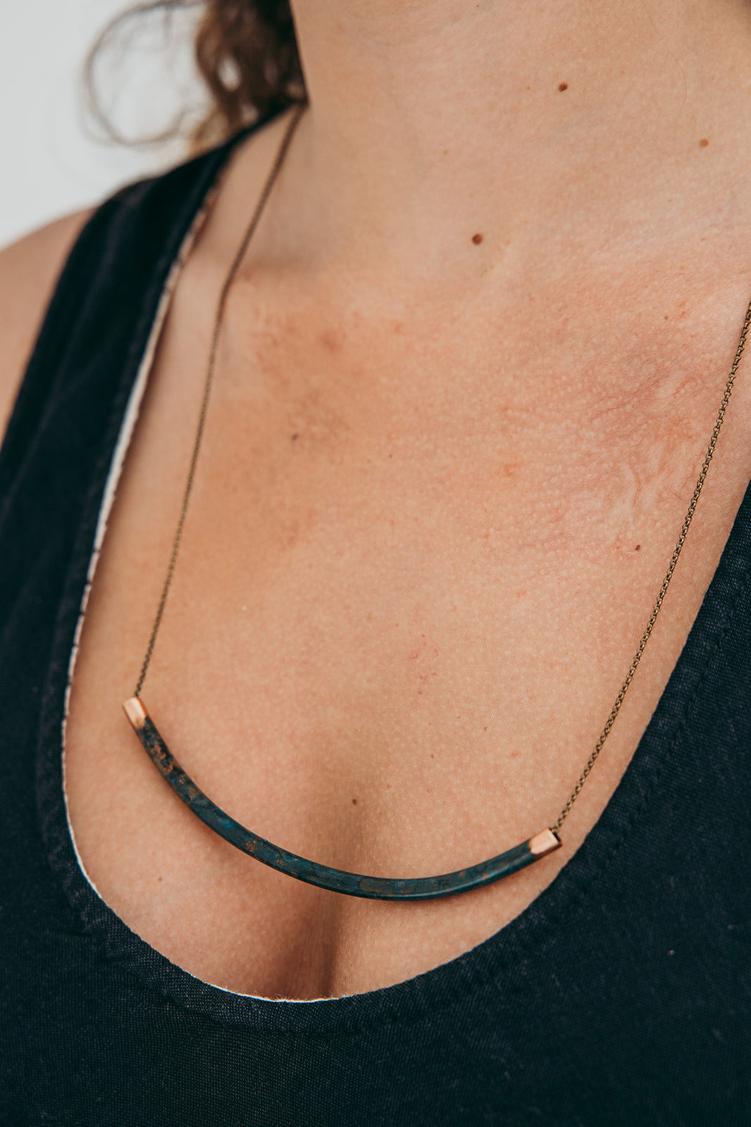 O Colar Tubo é feito manualmente e oxidado. Com corrente de 70cm.