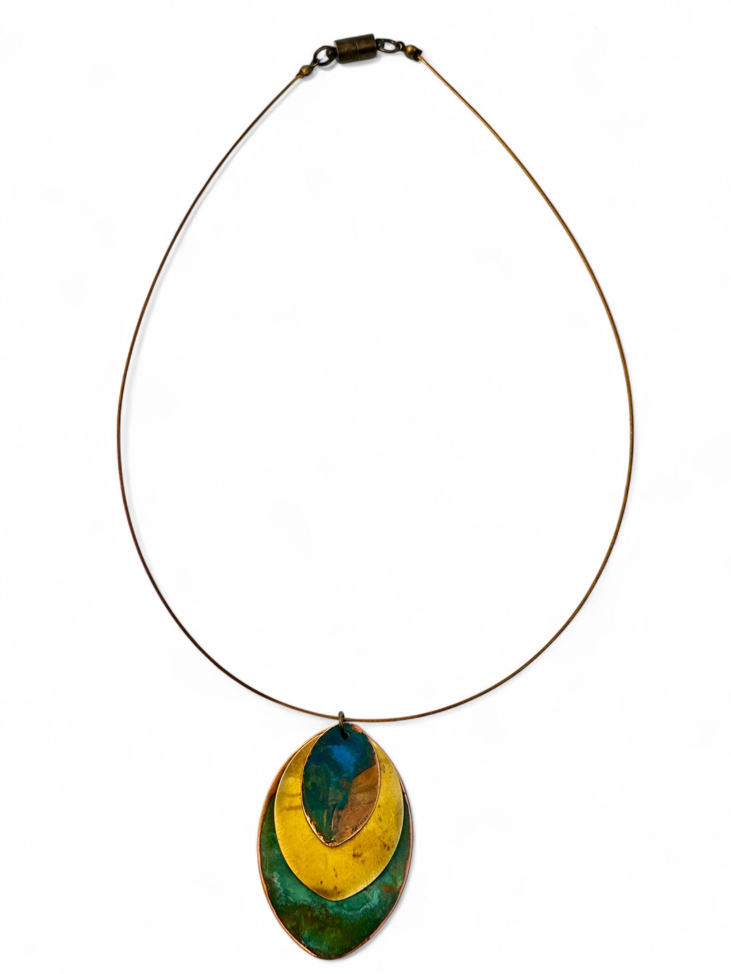 Gargantilha Seed. Cada peça é única com combinações de cores variadas. Cortado manualmente e oxidado, cabo de aço e fecho magnético