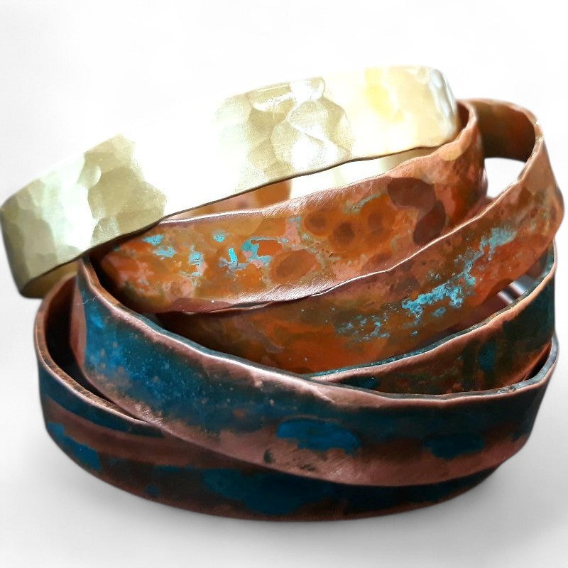 Pulseira aberta, martelada à mão e oxidada