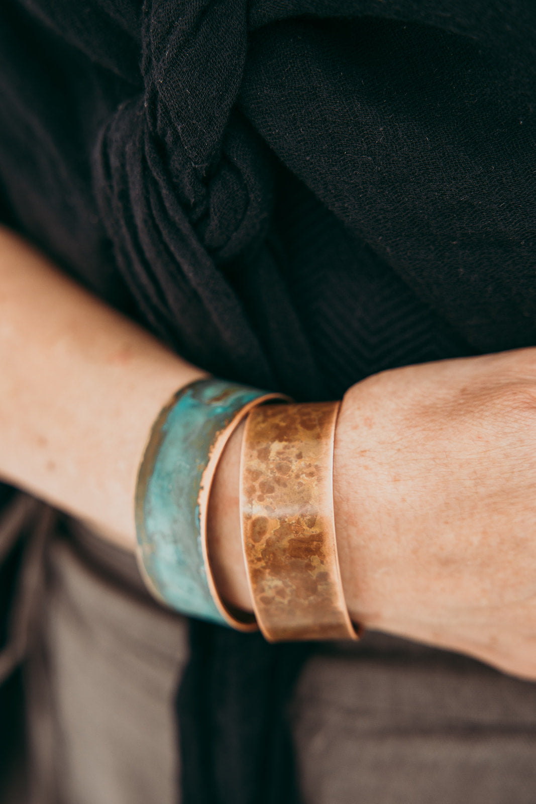 A imagem principal do produto mostra a peça disponível para compra, mas procuramos sempre incluir uma fotografia de contexto, com a peça usada por uma modelo ou em cenário. Essa foto pode não corresponder exatamente à peça que que receberá, podendo ser de outro metal ou de uma tonalidade diferente de oxidação; serve apenas como exemplo de como a peça fica no uso.